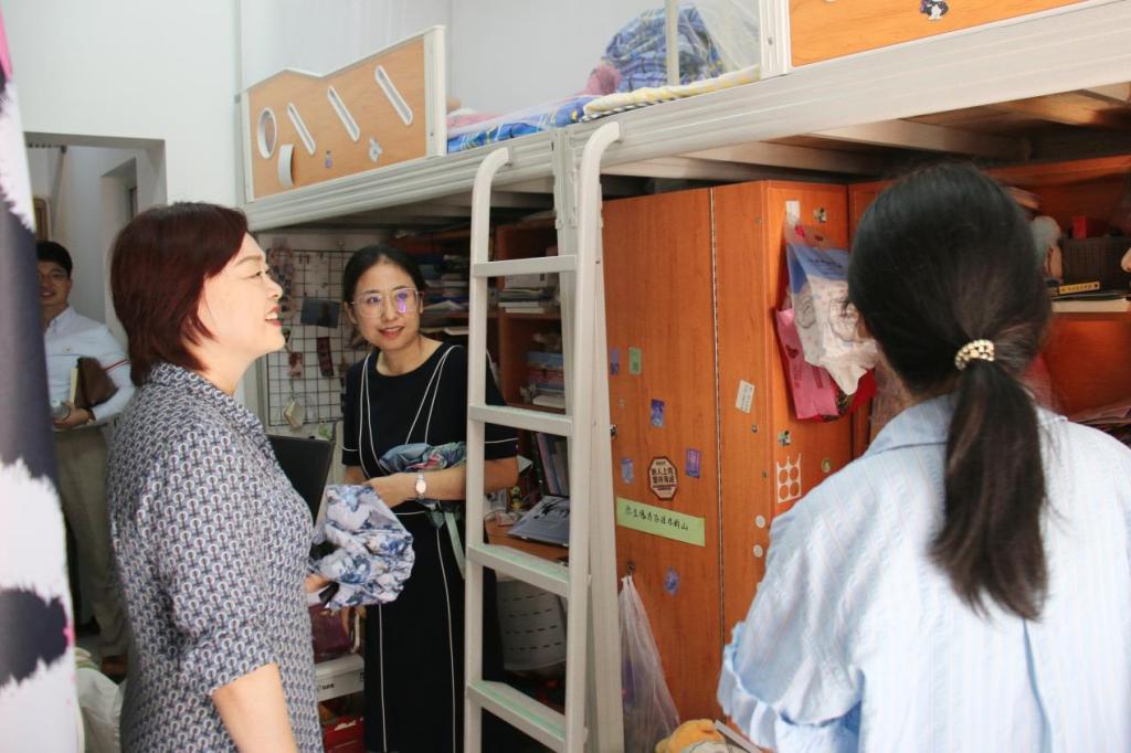 为切实了解学生的住宿情况,提升宿舍管理水平,保障学生安全和舒适的生活环境,2024年9月3日,护理学院党委书记蒋小剑、党委副书记李宗霖、学生管理科科长刘莉、团委书记薛金凤、学生管理科邹灵玥前往学生宿舍进行实地走访。