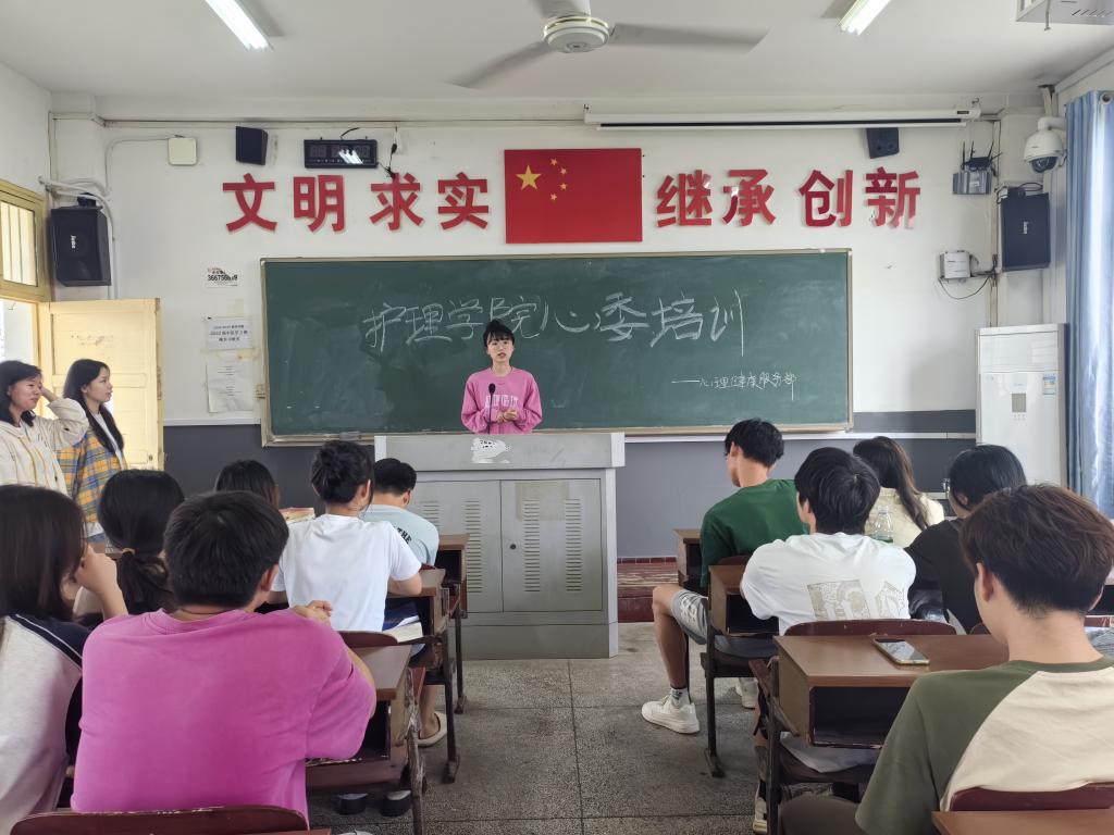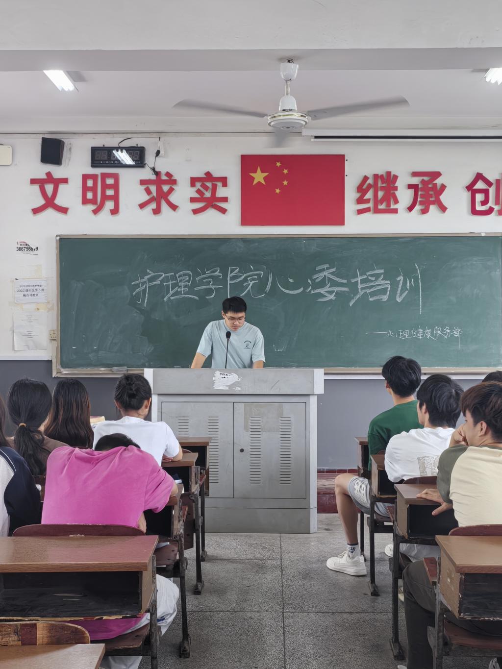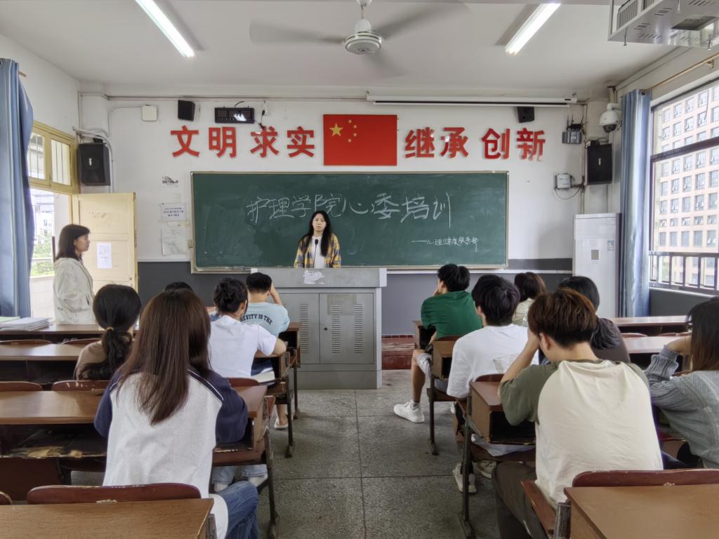 2024年5月31日14点,护理学院于东塘校区教学楼40教室开展了第一次心理委员培训。本次培训的主要负责人为护理学院辅导员老师邹灵玥老师和心理健康服务部部长范晓雨与副部长刘嫣峥,参加此次培训的人员有2023级各班心理委员。