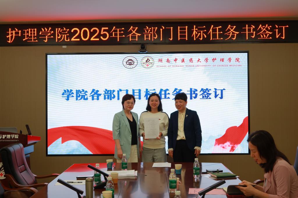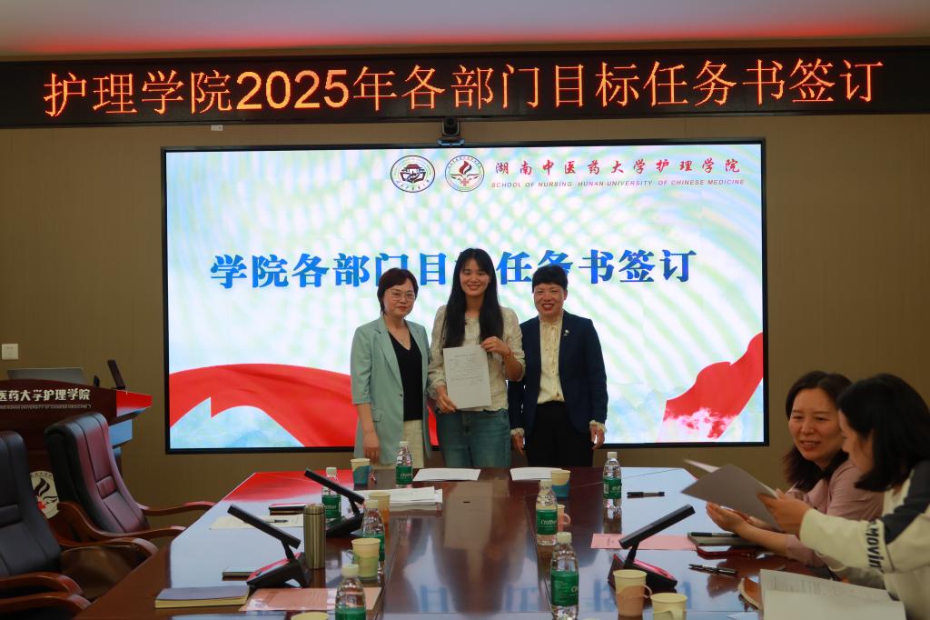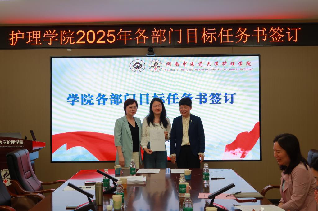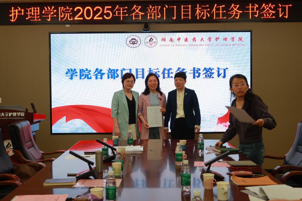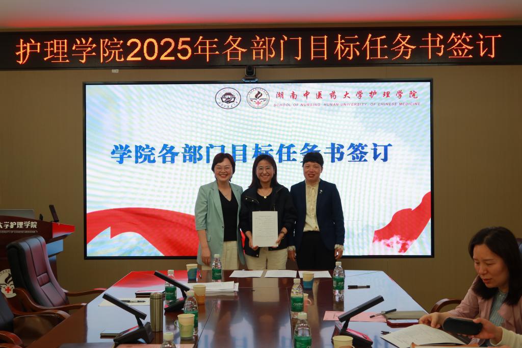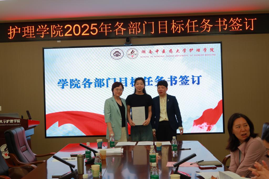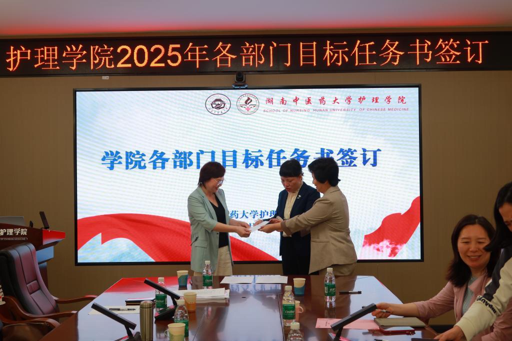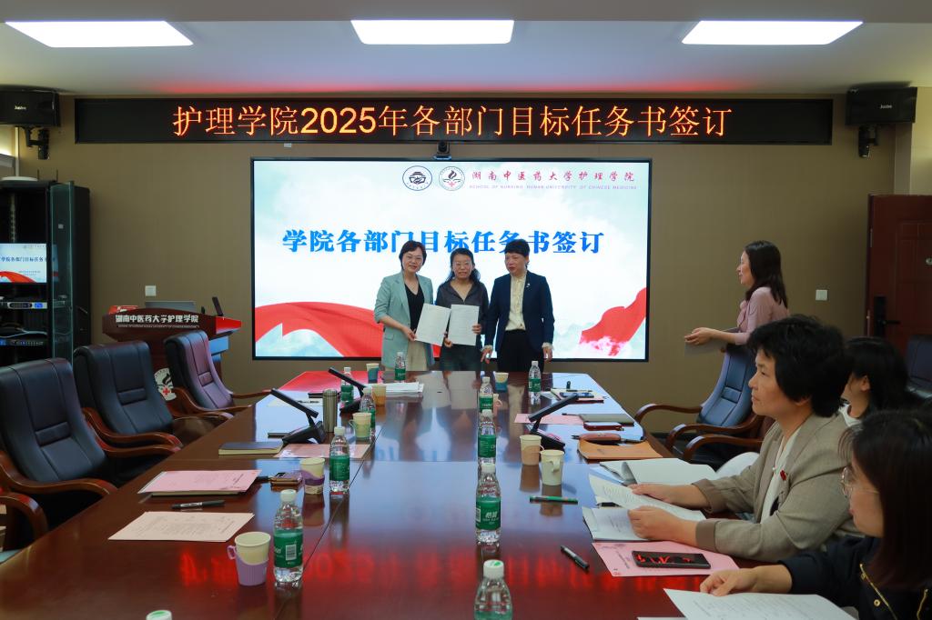 护理学院按照大学下达的205年目标管理任务要求,于4月30日举行了与各科室、部门签订2025年目标任务书的仪式。
