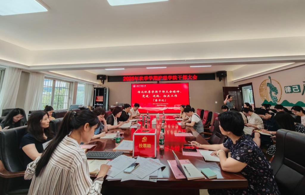 9月2日下午,湖南中医药大学护理学院于学院会议室召开2025年秋季干部大会。学院领导班子、各部门负责人及秘书参加。会议由党委副书记李宗霖主持。