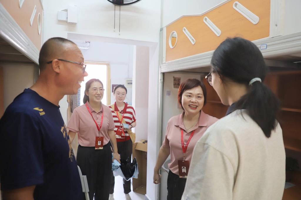 新生入住期间,学院党委书记蒋小剑,党委副书记李宗霖,党委委员、副院长李春艳,副院长秦莉花带领学生管理科全体教师,深入各新生宿舍开展走访慰问。领导老师们与新生及家长亲切交流,仔细询问住宿环境是否适应、生活需求是否满足,针对新生提出的问题,能现场解决的当即协调处理,需跟进的则认真记录并明确反馈路径,用实际行动为新生营造温馨舒适的居住环境