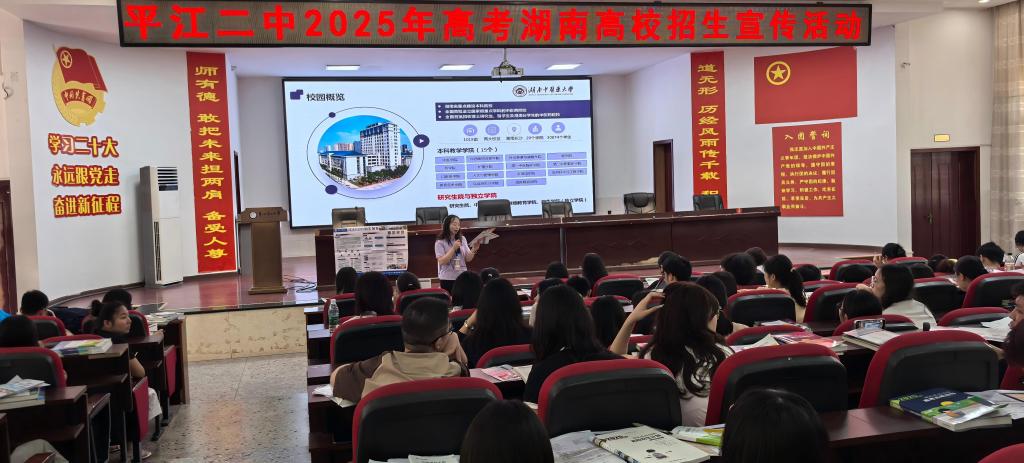 此次招生专场讲座,为我校与平江二中学生及家长搭建了面对面沟通的桥梁,为考生们提供了专业的指导和全面的信息,有效增进了平江二中师生和家长对湖南中医药大学的了解,极大地激发了学生报考的热情。此次平江二中之行,是湖南中医药大学护理学院2025年招生宣传工作的重要一步。未来,学院将持续深化与各中学的交流合作,开展更多形式多样的招生宣传活动,为选拔优秀人才、培养高素质护理专业人才贡献力量。