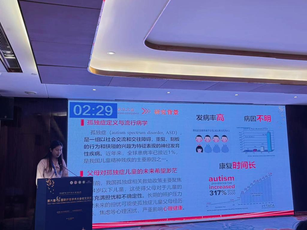 我院2023级、2024级护理专业硕士研究生梁湘、吕建红、王玉、易露茜,2022级本科生彭欣怡5名同学受邀参会并进行大会发言,向与会国际同行展示其研究成果,并在阿尔茨海默病、认知障碍、孤独症等研究领域取得较好成就,为后续相关研究的实施与开展奠定科学基础。各位研究生的汇报逻辑清晰,赢得了与会专家的兴趣与认可,充分展现了其扎实的科研素养与国际化学术视野。