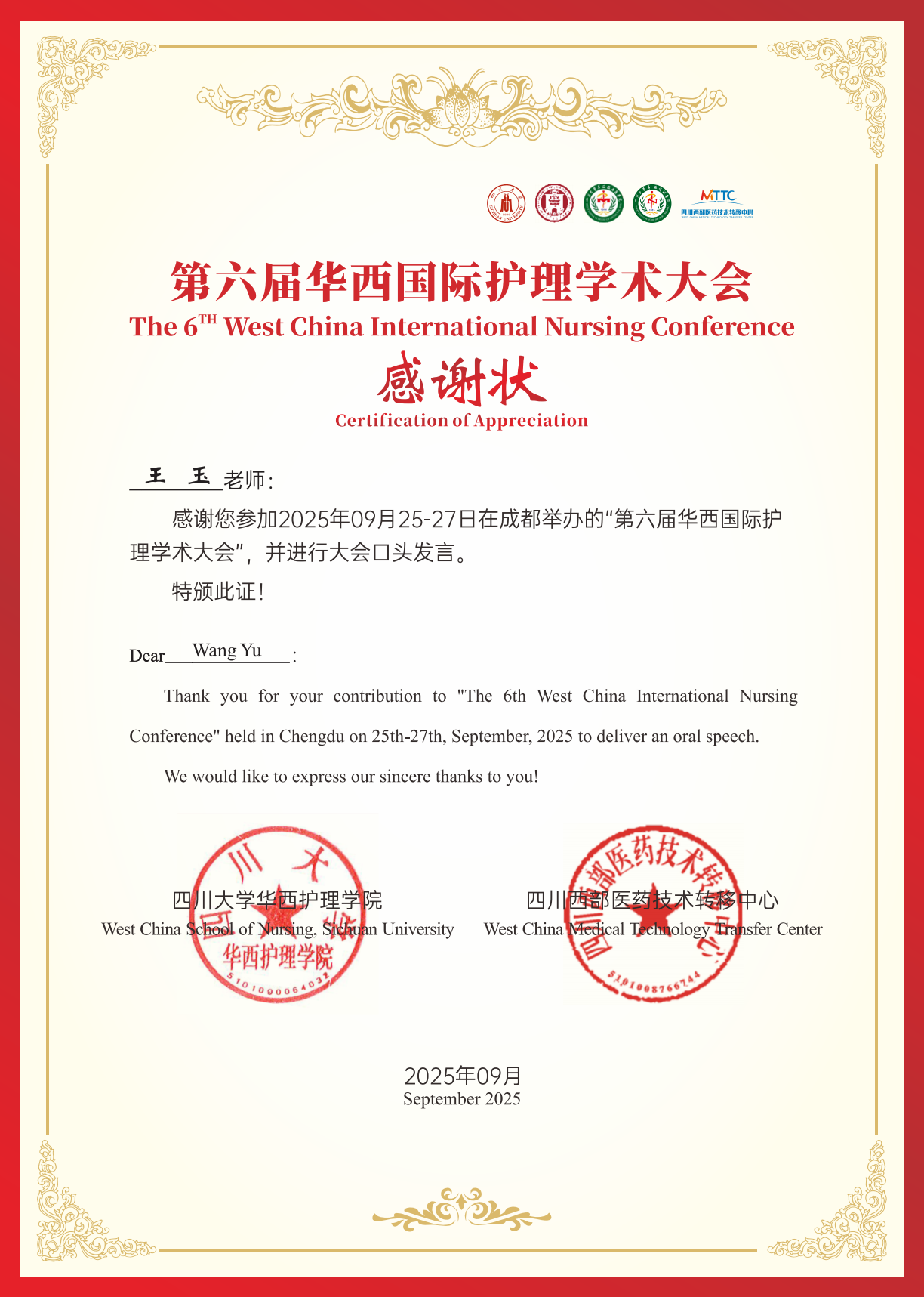世纪华西,百年护理!时值华西护理110年华诞,四川大学华西临床医学院护理学院于2025年9月25-28日在四川成都成功举办第六届华西国际护理学术大会。作为国际护理领域的重要学术交流平台,本次大会以“智领护理 学科融合 赋能健康”为主题,论道学科发展、聚焦护理前沿,勠力同心促人类健康。本次大会吸引了来自英国、美国、澳大利亚、新加坡、芬兰、西班牙、沙特阿拉伯、日本、新西兰等全球10余个国家及中国港澳地区的400余所医学/护理院校与医疗机构的专家学者。