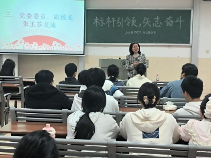 随后,张玉芬副校长与同学们深度交流。她立足行业发展趋势,全面剖析了护理专业的就业前景与发展潜力,用详实的行业数据与鲜活案例,缓解了同学们的焦虑情绪,增强了大家对专业的认同感与就业信心。她寄语同学们,要尽早明确人生目标,将长远规划拆解为阶段性行动,以脚踏实地的努力浇灌梦想之花。