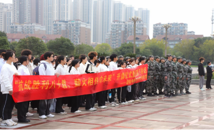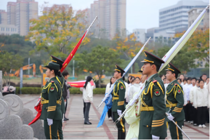 随后,李宗霖副书记发表致辞。他带领师生回顾抗战峥嵘岁月,深切缅怀抗战先烈的丰功伟绩,阐述了伟大抗战精神的时代价值,并勉励全体同学将个人理想融入国家发展大局,肩负起新时代青年的历史使命。随后,优秀学生代表在国旗下发言,表达了继承先烈遗志、矢志报效祖国的坚定决心。