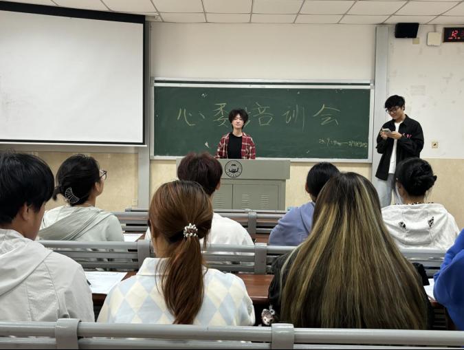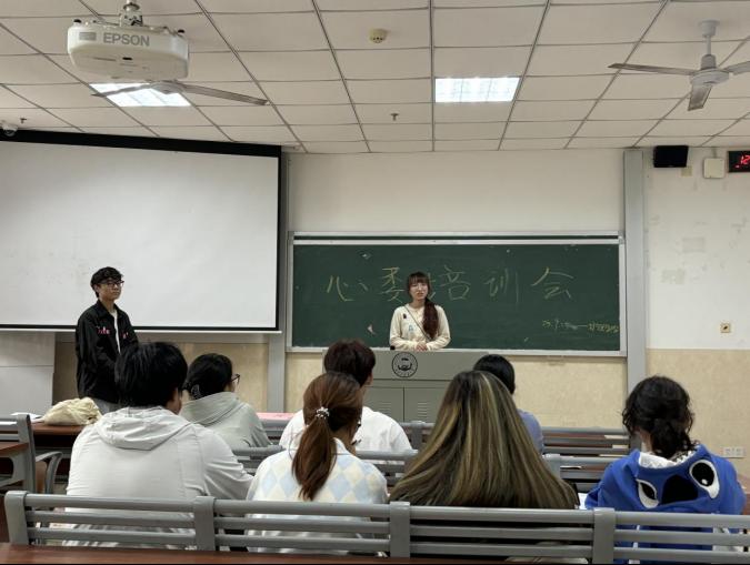 培训中,心理健康服务部副部长邱健峰对新上任的心理委员欢迎,告知各位心委工作规范:遵守规章制度,及时上交资料、转发活动,详细说明了每周交表格、两周交登记本等日常工作。心理健康服务部部长何欣颖为心理委员们介绍学院心理健康相关的大型活动,希望心委们能够团结互助,多多交流。邹灵玥老师强调心理委员的责任重大,要细心观察身边同学心理状况,异常情况要上报并与辅导员沟通,作为学院强有力的信息员,应当与老师们共同守护学生们的心理健康。