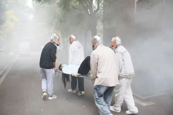随着模拟烟雾的升起,应急疏散演练正式拉开帷幕。同学们在安保人员的指引下,弯腰低姿、捂住口鼻,沿着指定路线快速、有序地向校园安全地带撤离。整个疏散过程紧张而不慌乱,高效而有秩序,达到了预期的演练效果。演练结束后,消防救援人员对学生开展了消防灭火技能培训。