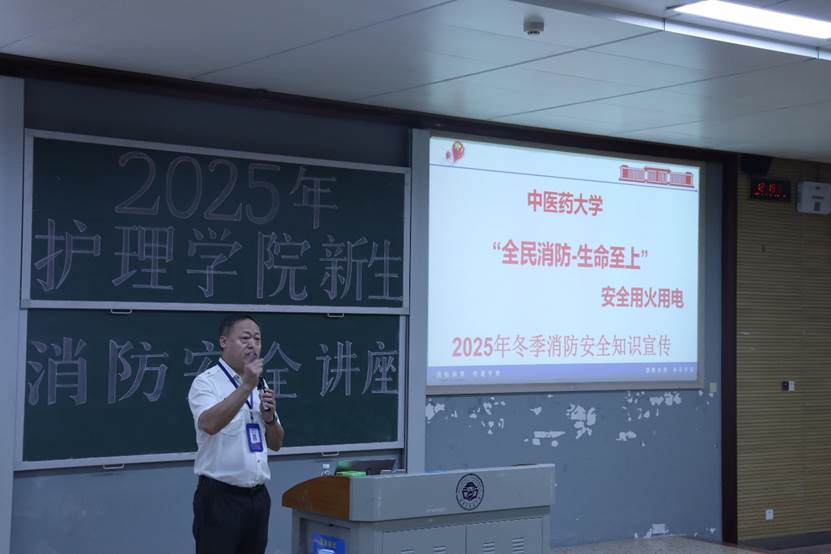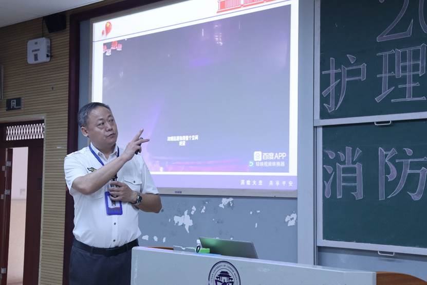 在第34个国家消防日到来之际,为预防和减少火灾事故的发生,更好地践行“平安校园”建设,增强我院学生消防安全意识,提升应对火灾等突发事件的应急处置和自救互救能力,11月7日,护理学院特邀湘安消防的狄玉龙老师在济世楼117教室为我院新生举办了一场主题为“全民消防,生命至上——安全用火用电”的消防安全讲座,并进行消防演练。