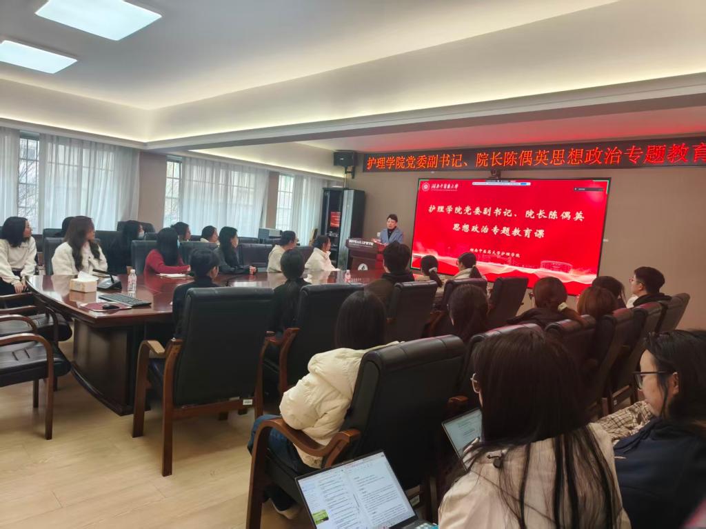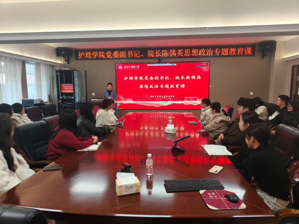 2025年12月29日下午16:30,我院党委副书记、院长陈偶英在学院会议室主讲思想政治专题教育课。本次课程主题为树立理想、立志担当,恪守学术规范和诚信的思想政治专题教育。线下会场有2025级30名学生代表参加,23级、24级、25级全体研究生通过线上方式同步学习。