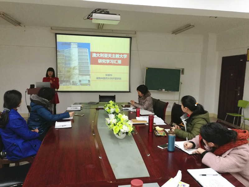 2016年9月,我院选派潘晓彥教授和张银华副教授两位骨干教师在澳大利亚天主教大学访学3个月。两位老师根据自己的研究方向分别汇报了在教学和科研的进修情况,潘晓彦教授重点汇报了在澳洲的护理教育和科研开展情况,充分肯定了澳洲先进的教育理念和教育方式,张银华教授重点对澳洲的养老护理模式进行了研究,给予我们很大的启发,两位老师表示,感谢学院给予的学习机会,此行去澳洲进修收获很大,将会学以致用,努力提高自己的教学水平和科研能力。
