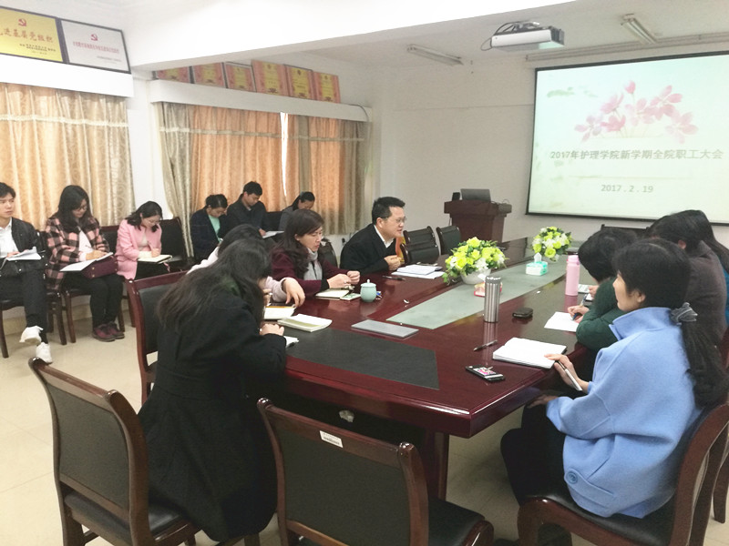 罗院长对我院寒假工作进行了总结,并对新学期重点工作进行了计划安排,本学期针对专业认证要求,重点做好本科生毕业论文选题、答辩,加强与本科生临床实习医院的联系,在老年护理领域、国自然领域有所突破,加强与研究生临床实习基地的联系,做好全国中医护理骨干人才培训,护理实验中心场地建设,学院要抓住“双一流”建设的契机,把护理专业发展壮大。罗院长对学院近期具体工作进行了布置,黄群副书记进行了补充。
