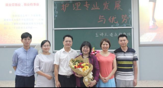 9月27日,为了解决大学的各种疑问,让大家对护理专业的发展与优势有一个深入的了解,我校于含浦校区三教举行了护理专业的思想讲座。参加此次活动的嘉宾有湖南省肿瘤医院副院长谌永毅院长、护理学院党委书记、院长罗尧岳院长、护理学院学生科马改红科长及护理学院团委书记李程老师。