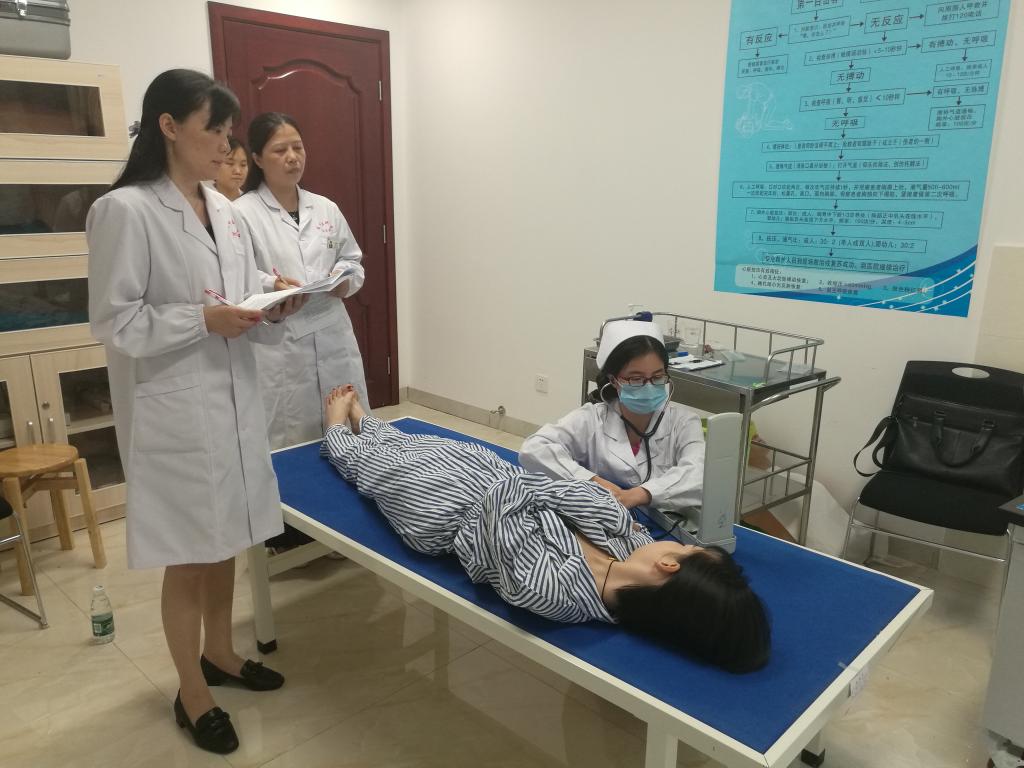 即将毕业的3位肿瘤护理方向专硕研究生徐依等依次进行了徒手心肺复苏、生命体征监测的操作考核。专硕研究生操作流程熟练、技术专业,得到了监考老师和基地医院领导的一致认可。考核结束后,专家对研究生在考核当中的优缺点进行了细致的点评,为2018届毕业的专硕研究生毕业后顺利走上临床工作岗位奠定了良好的基础。