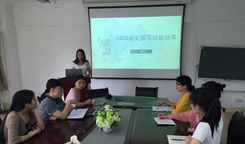本次学术沙龙首先由刘娟副院长、陈偶英副院长、李东雅教授、秦莉花副教授分享赴台湾高雄辅英科技大学学习心得。陈偶英副院长主要对辅英科技大学的概况、学习情况作了分享,李东雅教授主要汇报了辅英科技大学的人文印象,秦莉花副教授分享了辅英科技大学创新教学和专业管理方面的收获,之后由刘娟副院长对带队赴高雄学习交流作了汇报总结,使全体老师和研究生感受到了台湾辅英科技大学的人文和学术情况。最后,2015级研究生梁百慧作了《CSCD论文撰写经验分享》汇报,分享了她在论文撰写和投稿的技巧和经验。