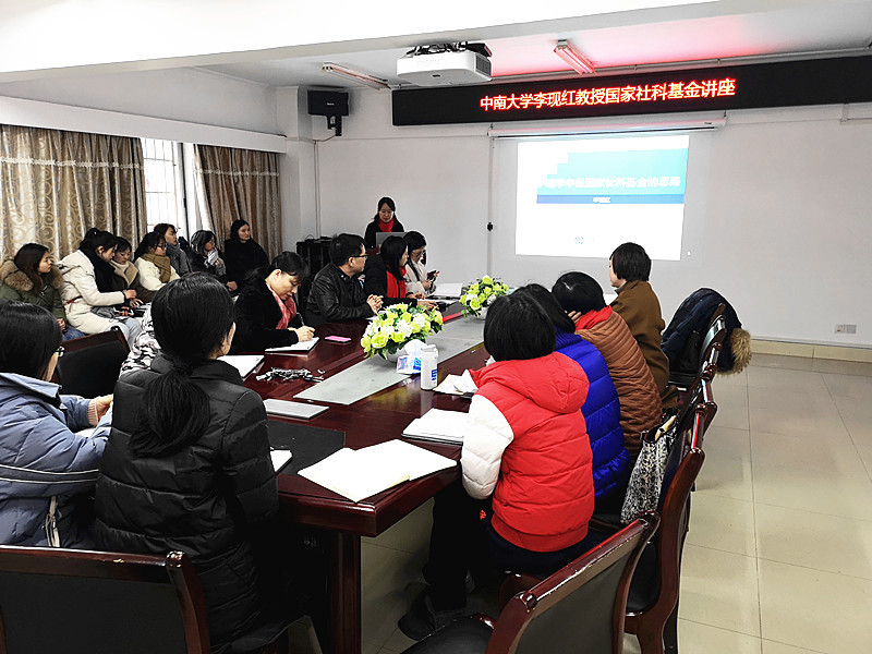 2019年1月16日下午,我院邀请中南大学湘雅护理学院李现红副院长来我院进行国家社科基金申报的讲座,会议由院长罗尧岳主持,学院老师和研究生参加了此次学习。