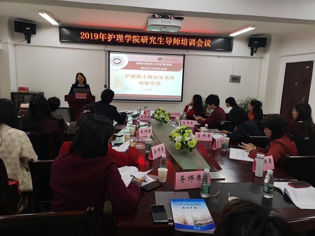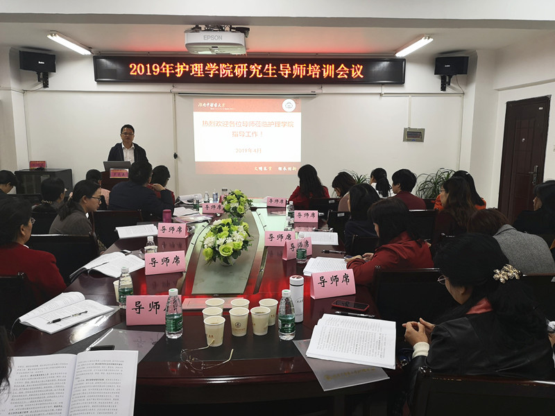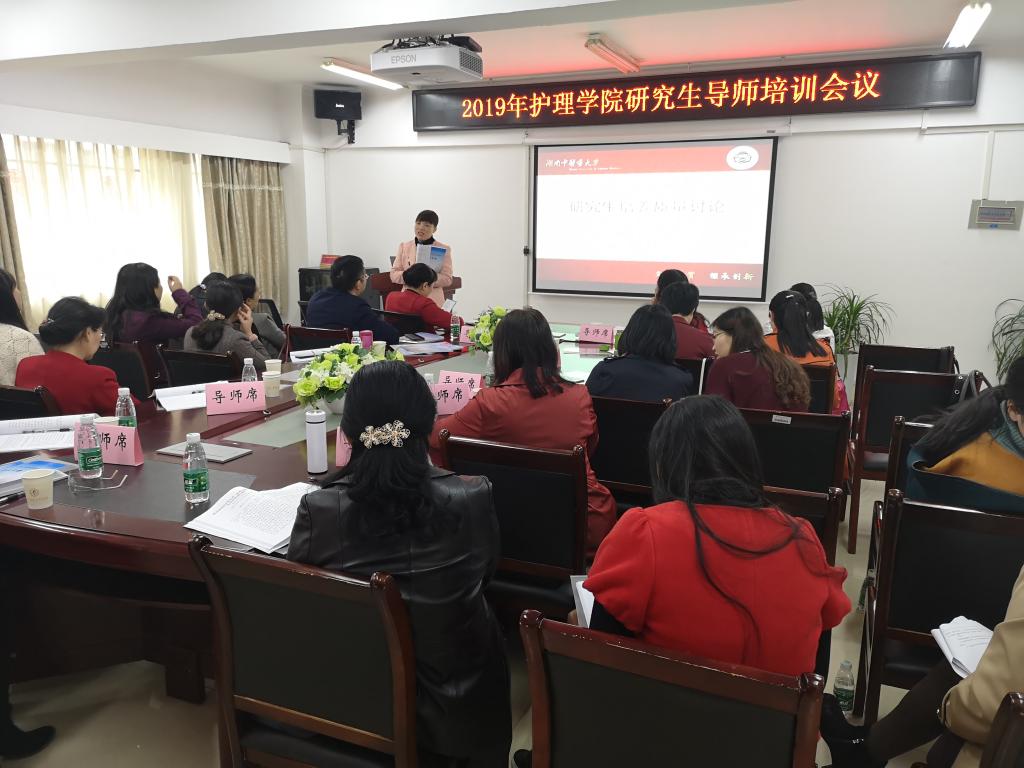 罗尧岳院长致欢迎辞,向各位远道而来的各位导师参加此次培训表示热烈的欢迎。陈偶英副院长详细地解读了护理专业学位和学术学位研究生培养方案,重点介绍研究生培养各个阶段的注意事项。罗尧岳院长组织各位导师一起学习《教育部办公厅关于进一步规范和加强研究生培养管理的通知》、《教育部加大对研究生学位论文作假查处力度,实现“零容忍”》和《湖南中医药大学关于全面落实研究生导师立德树人职责实施细则》等文件,要求各位导师切实履行导师职责,树立良好的师德师风,严格执行科研诚信,杜绝一切学术不端行为。朱正刚老师汇报学院研究生开题报告、文献综述和学位论文撰写规范及发表论文的相关规定,对导师如何指导研究生规范撰写开题报告和学位论文作了详细的说明。研究生导师代表附属中西医结合医院书记陈燕教授就“如何做好一名研究生导师”分享体会。最后,各位导师对于如何提高研究生培养质量展开了深入的讨论,各位导师积极发言,献言献策,现场气氛热烈。