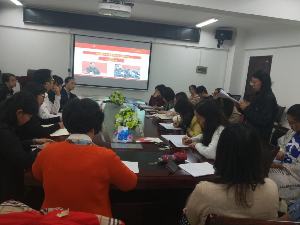 本次学习分为两个部分,首先是由职工支部蒋小剑书记解读关于高校党支部的“五化”建设标准,然后由学院党办组织全体党员学习了《在北京大学师生座谈会上的讲话》。