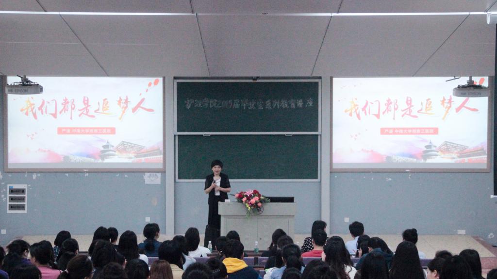 2019届学生毕业在即,为了面对面解决学生们关于毕业事宜的难题,为了给即将走入社会的护院学子们指点迷津,5月21日下午两点半,我院召开2019届毕业生系列教育讲座。讲座邀请了中南大学湘雅三医院护理部主任严谨主任,护理学院罗尧岳院长,黄群书记,年级老师裴芸及各学生科老师。