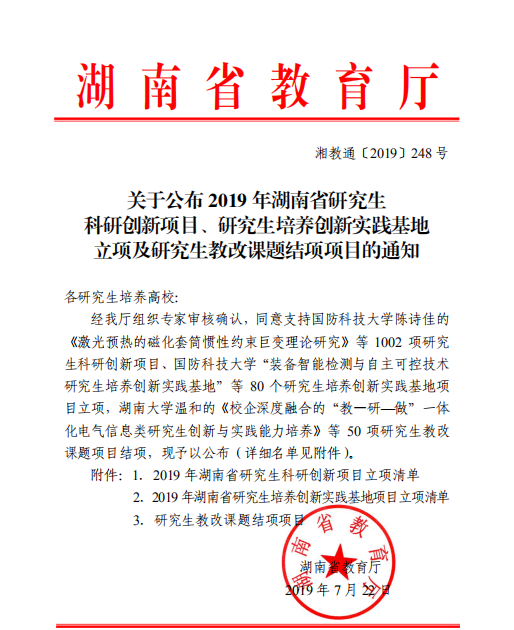 2019年10月,我院申报的项目“中医肿瘤护理研究生培养创新实践基地”获湖南省教育厅批准,是继2016年我院获批湖南省教育厅“中医急危重症护理研究生培养创新基地”后又一次获批省级研究生培养平台,为我院肿瘤护理方向专业学位护理研究生培养奠定了良好的基础。