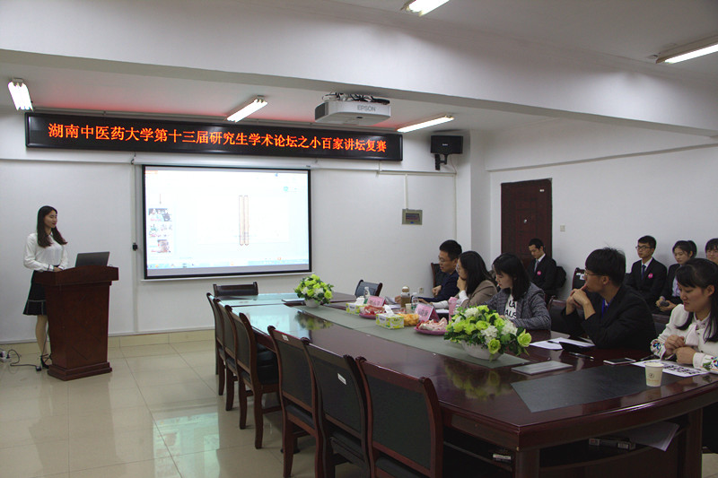 2019年10月27日,为庆祝新中国成立70周年,大力弘扬新时代爱国精神,树立中医文化自信,以中医论道,助力全球健康,湖南中医药大学第十三届研究生创新论坛之小百家讲坛复赛在护理学院会议室举行,通过初赛复赛的严格删选,最终有罗旺辉、刘天洋等10名选手进入决赛。