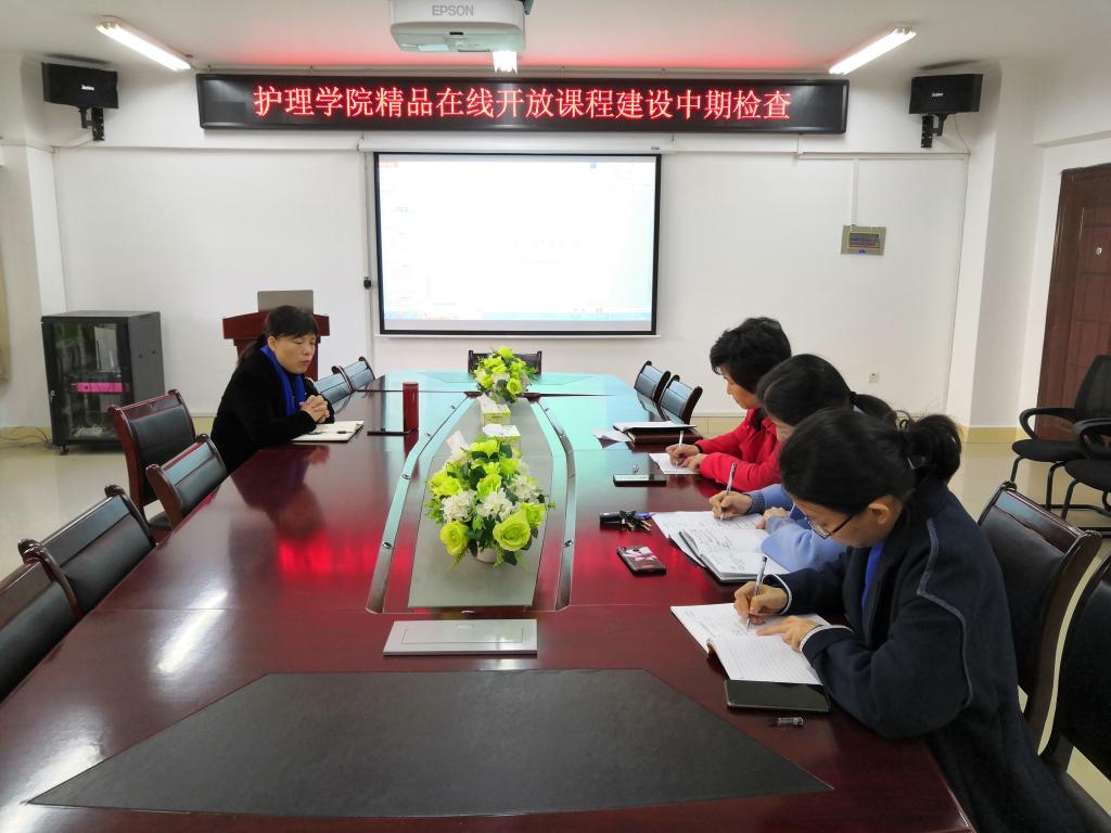 各课程负责人分别进行了课程建设汇报,汇报了目前课程建设进度、已取得的成果等,下一步建设计划和存在的困难。目前9门课程建设均进展顺利,7门院级精品在线开放课程建设均已完成建设目标80%,2门校级课程也进展顺利,各位课程负责人也均提出了下一步建设计划,尤其是《护理研究》计划2020年可上线开放,《内科护理学》其中“传染病护理学”部分已完成全部32个视频拍摄和剪辑等工作,且伍永慧老师参加了2019年湖南省普通高校教师信息化教学竞赛。