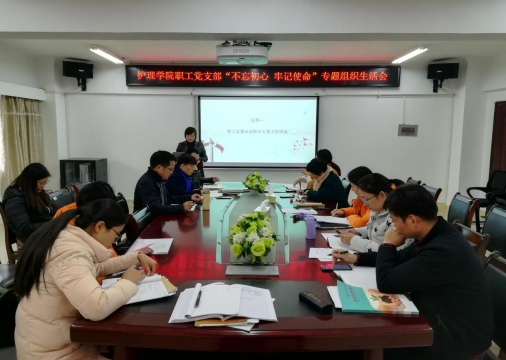 2019年12月5日15:00在护理学院会议室召开了职工党支部“不忘初心,牢记使命”专题组织生活会,会议由党支部书记蒋小剑主持。职工党支部共有党员22人,请假5人,实际参会17人,群众4人全部参加会议。