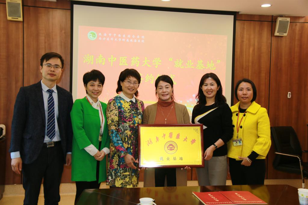 12月12日上午,我校首家珠海地区就业基地在珠海市中西医结合医院挂牌成立,这是我校面向国内重点区域、重点行业,落实引导大学生到广东就业的重要一步。我校招生就业处副处长曹一瑜和珠海市中西医结合医院副院长李敏代表双方签署《湖南中医药大学毕业生就业基地合作协议》,并举行了“湖南中医药大学就业基地”授牌仪式。双方随后还进行了座谈,均表示合作既有利于促进我校人才的培养,又有利于为珠海市中西医结合医院输送优秀人才。我校招生就业处副处长处长曹一瑜、护理学院党委副书记黄群和珠海市中西医结合医院主要部门负责人等参加揭牌仪式。