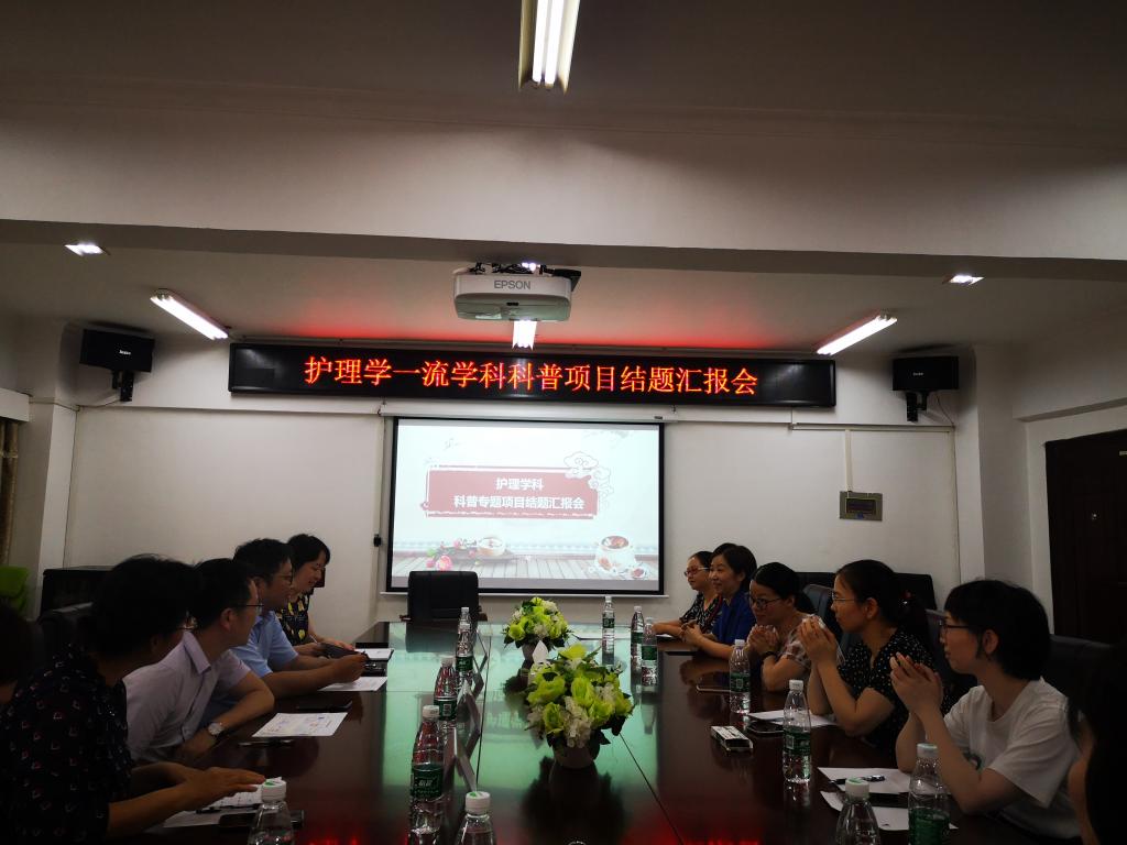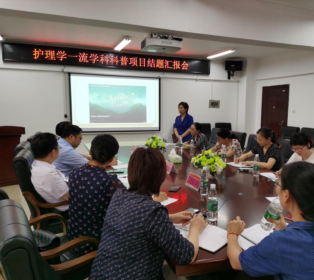 9月9日,我院在护理学院会议室召开了护理学一流学科2019年科普项目结题汇报会,护理学院院长、学科负责人罗尧岳教授、湖南省护理学会科普工作委员会主任委员丁四清教授、大学科技处处长田雪飞教授及项目负责人等参加了此次汇报会。
