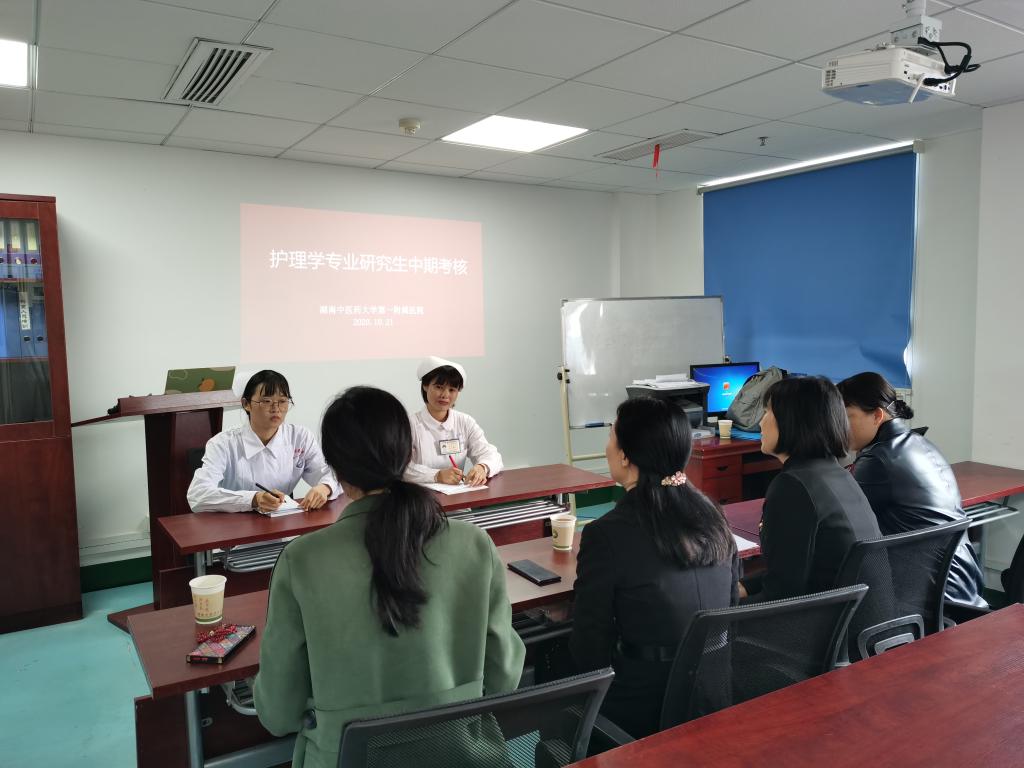 2020年10月16-21日 我院对2018级专业学位研究生进行中期考核,罗尧岳院长担任考核组组长,陈偶英副院长担任考核组副组长,各位研究生导师担任考核组专家。