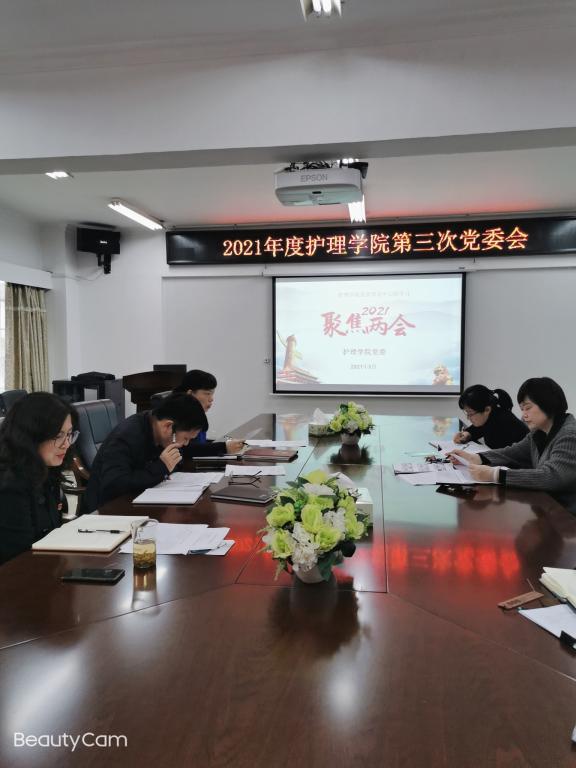 2021年3月18日,护理学院党委会在学院会议室召开,学院党委书记、院长罗尧岳,学院党委副书记黄群、学院副院长陈偶英及党委委员蒋小剑同志、马改红同志参加了会议。会议由罗尧岳主持。