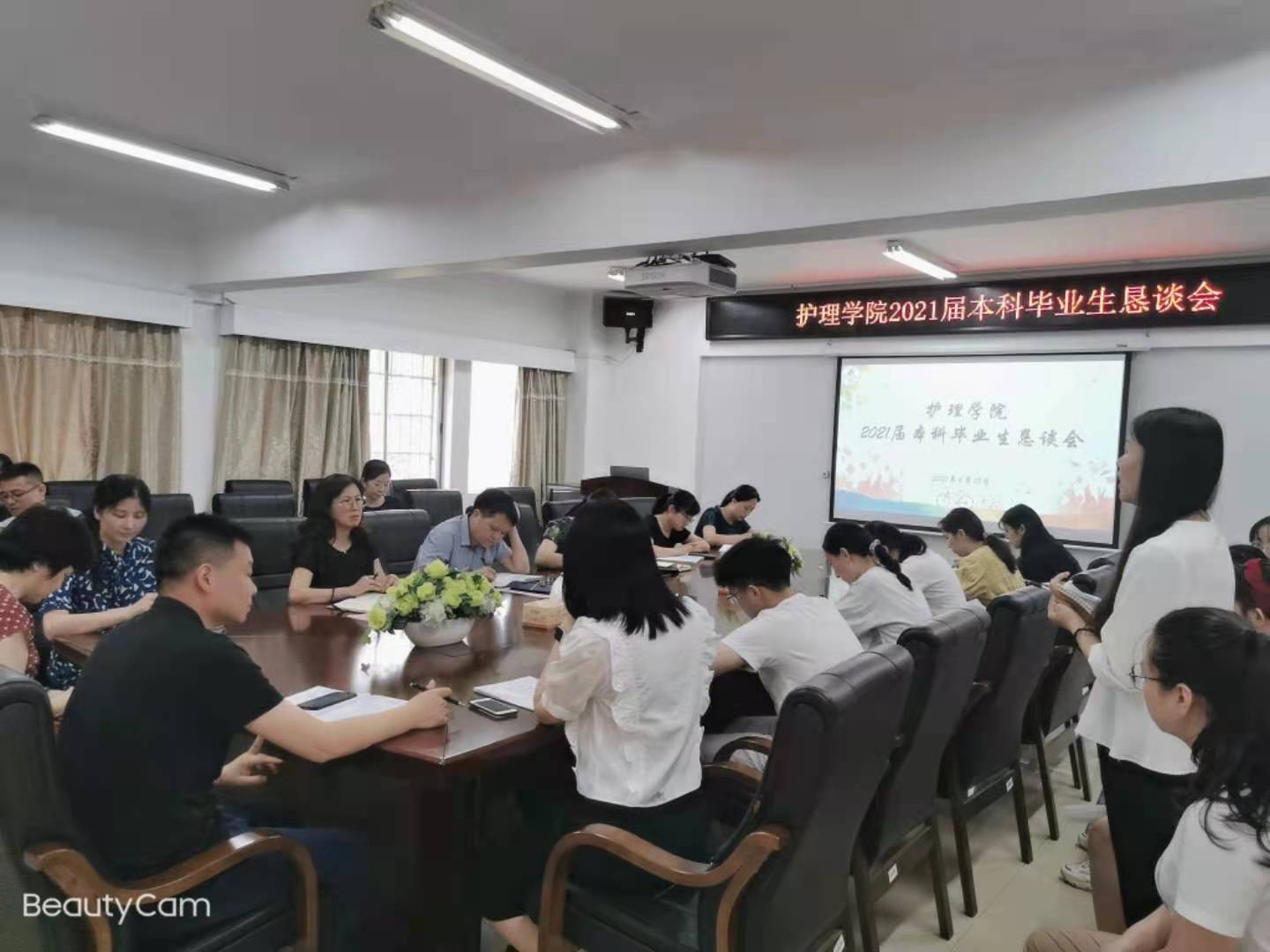 2021年6月15日在学院会议室举行了2021届本科毕业生恳谈会。会议由党委副书记黄群主持,党委书记、院长罗尧岳,副院长陈偶英,科教科、各教研室、学生科老师,2021届毕业生代表参加了恳谈会。