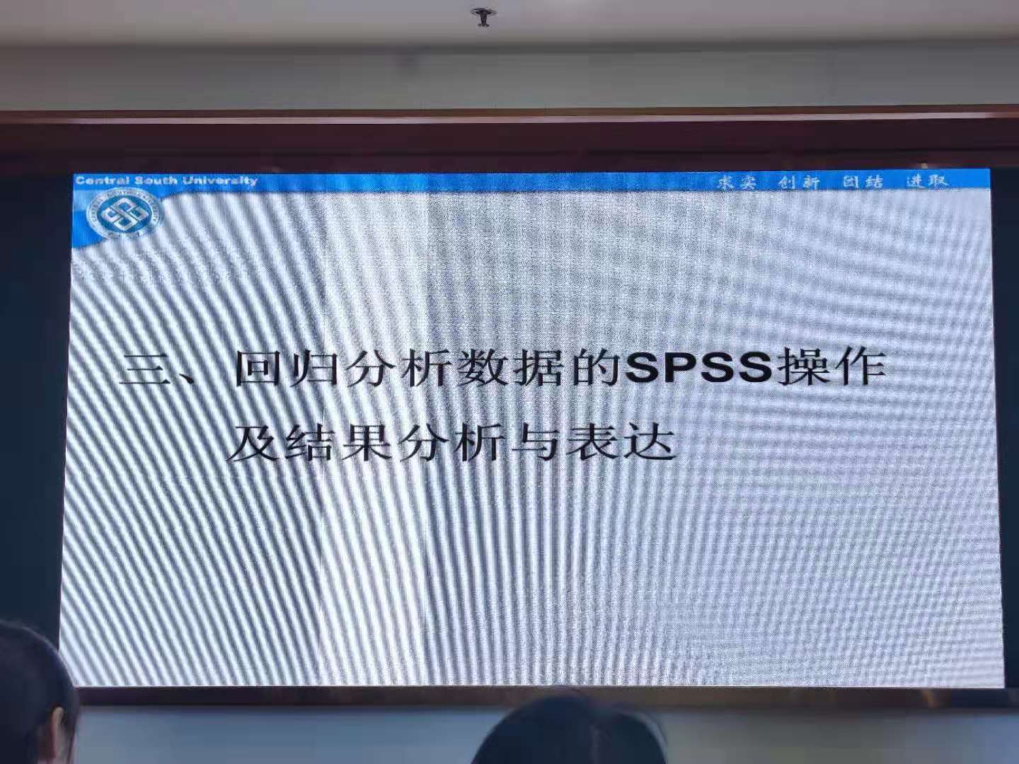 上午9时,湖南省伤口康复临床医学研究中心特邀湘雅公共卫生学院虞仁和教授为大家讲授《SPSS之如何运用回归分析》,虞仁和教授以回归分析的重要性展开,深入浅出的讲授了如何正确的将回归分析运用到实际科研数据分析当中,最后结合具体案例,用浅显易懂的语言将复杂的SPSS操作及结果分析简单化,其精彩的讲座赢得了同学们热烈的掌声。随后,中南大学湘雅护理学院王红红教授以《论文撰写及CSCD、SCI投稿技巧》为题,向在场的同学们传授论文撰写、投稿技巧,并指出在论文的选题、形成、撰写、投稿过程中的常见误区。