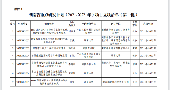 湖南省重点研发计划(2021-2022年)立项项目清单
