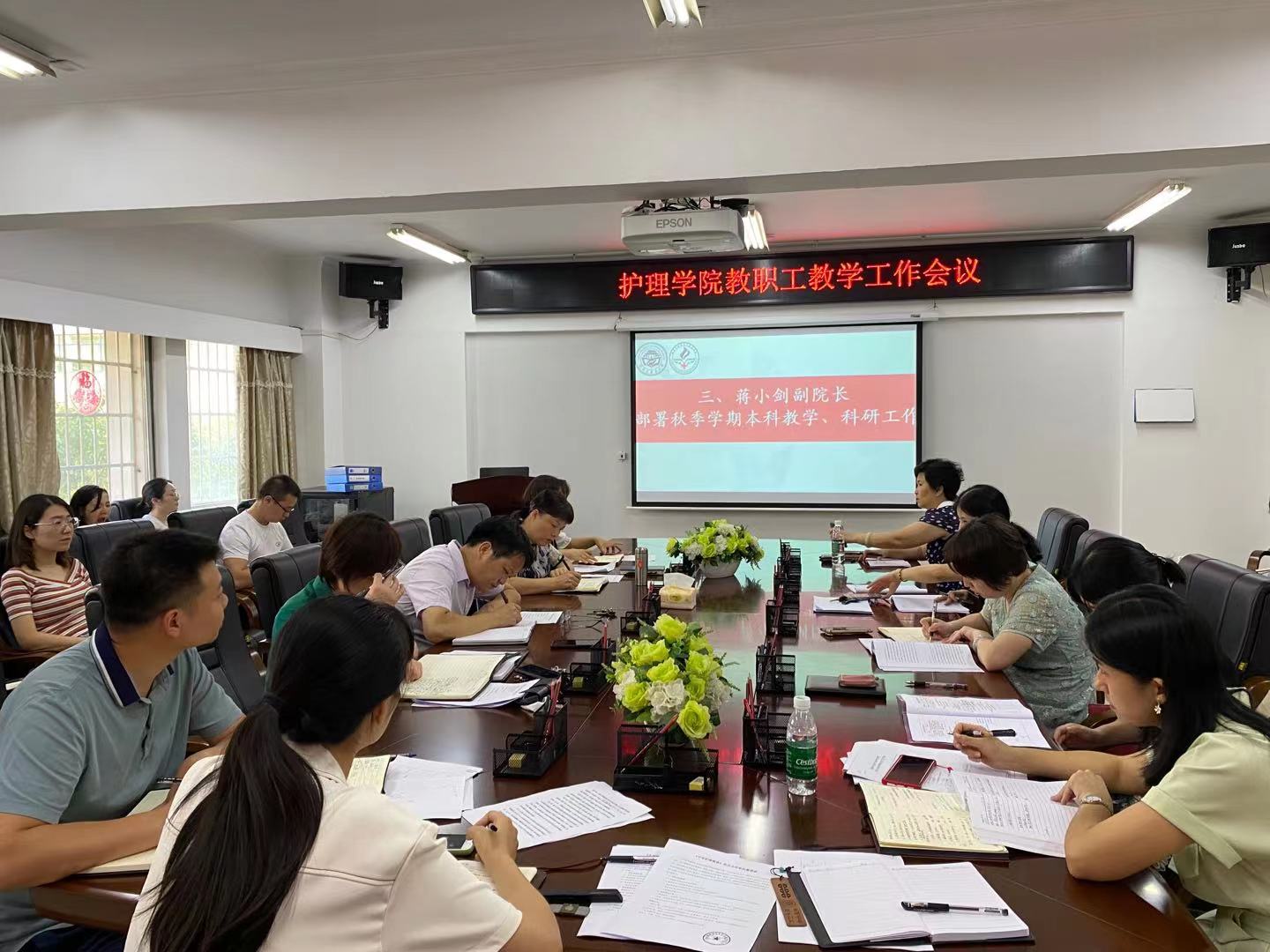 2021年9月5日上午,护理学院在学院会议室召开新学期教学工作会议,落实大学教学工作会议精神并安排部署新学期各项教学工作。会议由蒋小剑副院长主持,院领导、科教科、办公室及全体教师参加了本次会议。