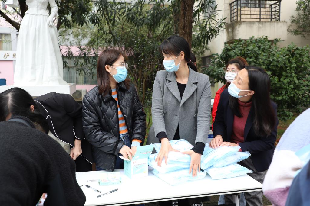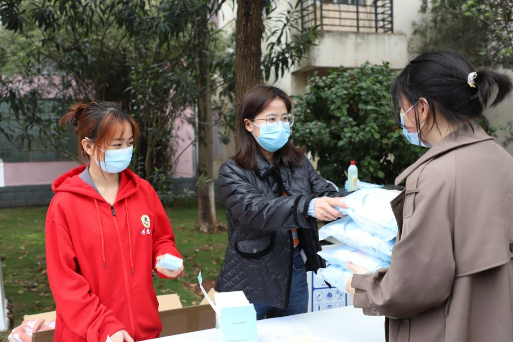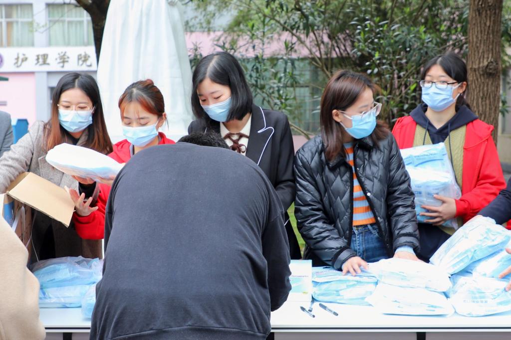 4月1日16:40在16栋宿舍楼下南丁格尔雕像前,疫情防控青年志愿队在学生科及院办老师的带领下进行口罩、消毒液、体温计等疫情防控物资的发放。病毒可以被隔离,但温暖不会被隔离,简单的物资是不简单的心意。