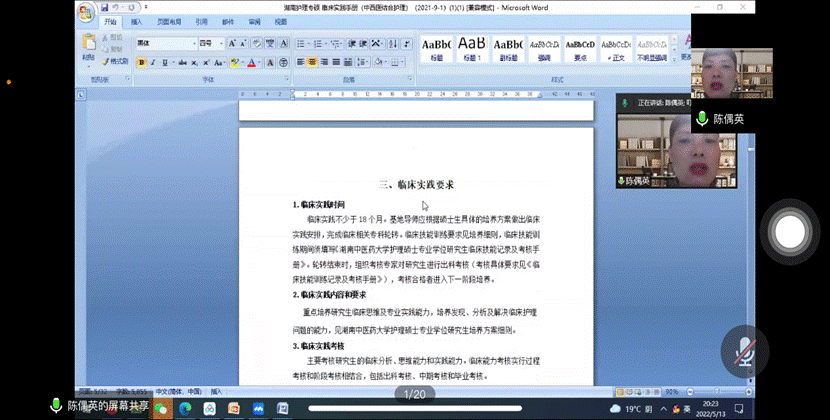 为提高我院护理专硕研究生培养质量,我院于2022年5月13日晚上8点,由陈偶英副院长主持召开了护理专业硕士研究生导师及各实践基地临床带教老师培训会,会议以腾讯会议形式召开。会议由我院罗尧岳院长、护理学院老师、临床基地研究生导师、临床科室带教老师以及专硕研究生共同参加。培训会开始,由邹灵玥老师介绍到场嘉宾并对参会人员表示欢迎。