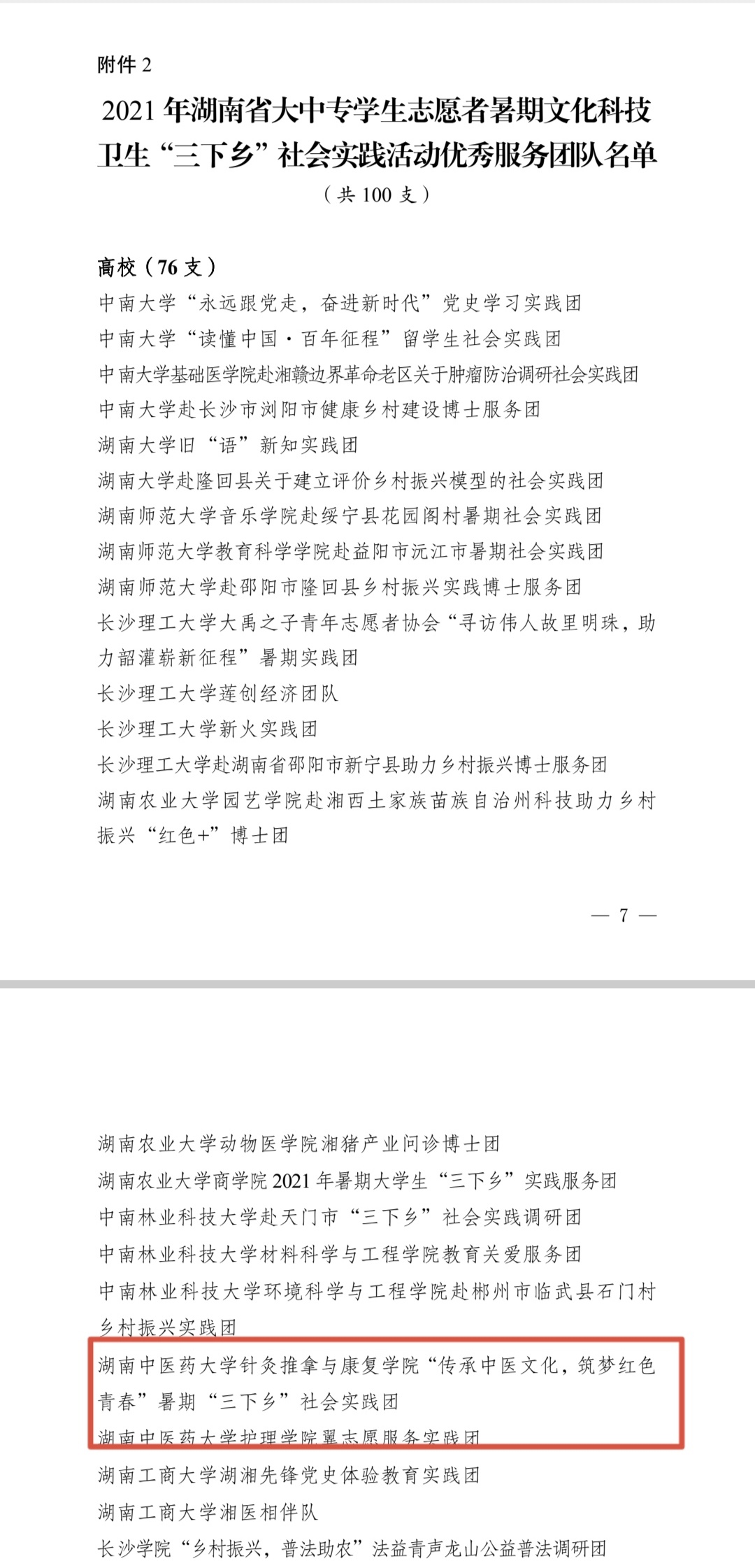 近日,《关于2021年湖南省大中专学生志愿者暑期文化科技卫生“三下乡”社会实践活动优秀单位、优秀服务团队、优秀指导者、优秀个人、优秀品牌项目的通报》公布,护理学院党委书记、护理学院院长罗尧岳教授荣获优秀指导者称号,我院“湖南中医药大学护理学院翼志愿服务实践团”获优秀服务团队称号。
