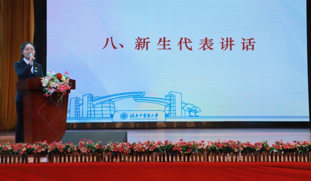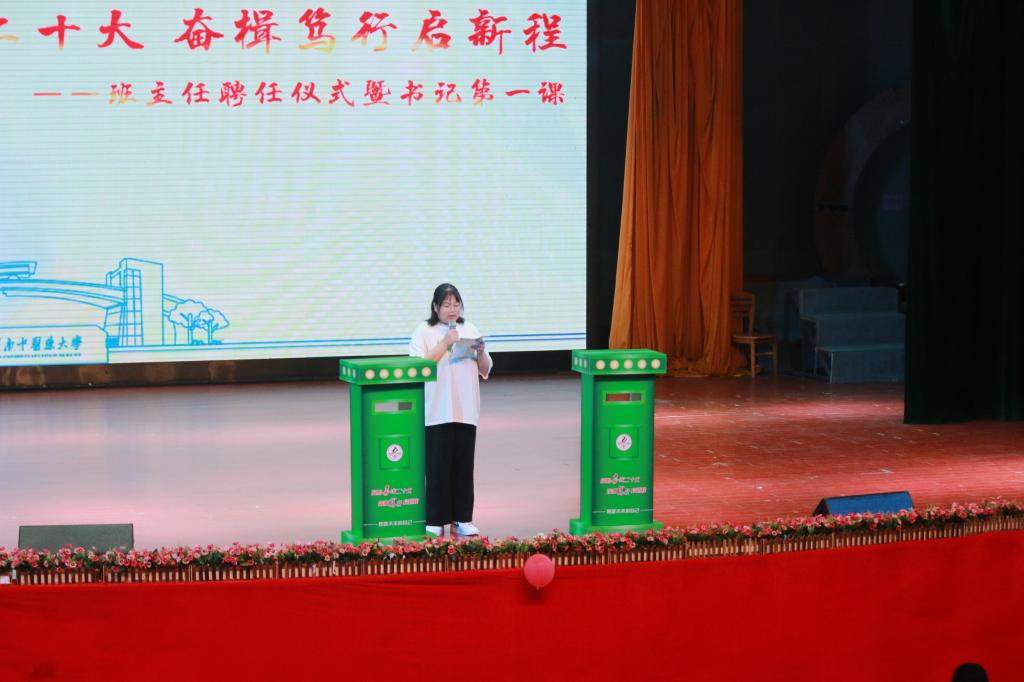 活动伊始,由吴湘副书记上台致辞,她为新生的到来表示欢迎,同时用“青春须早为,岂能长少年”劝诫新生莫要浪费时间,她鼓励新生将自身发展与学院发展相结合。随后罗尧岳院长宣读新生班主任名单及《湖南中医药大学护理学院班主任管理办法》,学院领导和老师为各位班主任和同伴学长颁发聘书合影。新生班主任代表张杰老师根据自身的经历向同学们总结出三点心得:1.自律;2.坚守初心,笑对挫折;3.怎样拥有美好的未来。新生代表何田娟子上台发言,用坚定的语气表达出求学的决心。活动最后,“奋楫笃行启新程”时间信箱环节,同学们纷纷上台投递出写给未来自己的一封信,22级新生胡雯静同学分享了自己的故事与感想。