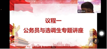 2022年11月31日晚上,由于目前疫情形势严峻,我院于线上举行学术沙龙。会议由刘尚同学线上主持,本次活动主要由优秀校友张煜同学带来公务员的备考经验分享,万碧玉、罗红等三同学进行学术汇报两大部分组成。