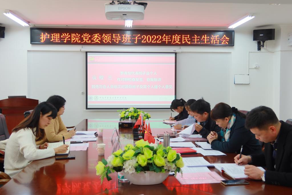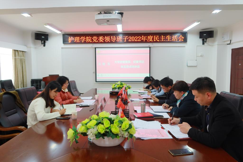 2023年2月28日下午,护理学院党委领导班子2022年度民主生活会在学院会议室召开,校党委纪委书记张玉芬主持会议,学院党委领导班子五位成员,校纪委办公室、监察专员办公室、纪律审查科科长兼联络员李艳霞、学院专职组织员列席参会。