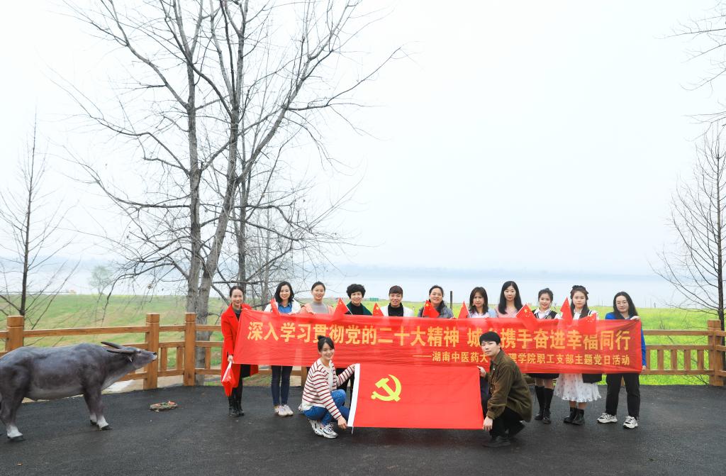 为深入贯彻学习党的二十大精神,引领全院教职工拥有“健康、快乐、感恩、奉献”积极向上心态,身心健康,快乐生活,亲身体验感受党的正确领导,社会主义新农村的振兴,听党话、跟党走,激励全员凝心聚力,努力工作,积极开拓创新。3月8日下午,护理学院职工党支部组织全体教职工党员赴长沙鹅洲岛开展“深入学习贯彻党的二十大精神,城乡携手奋进幸福同行”主题党日活动。