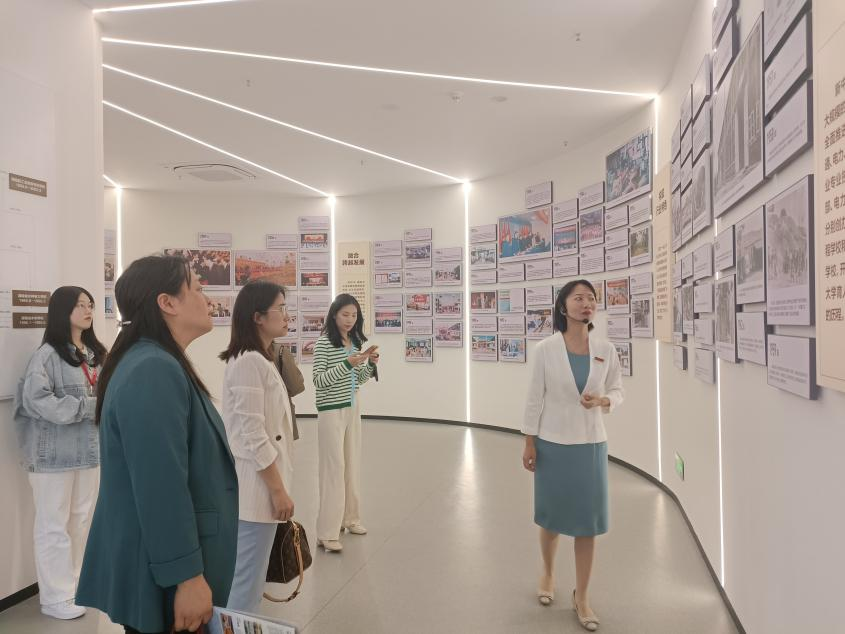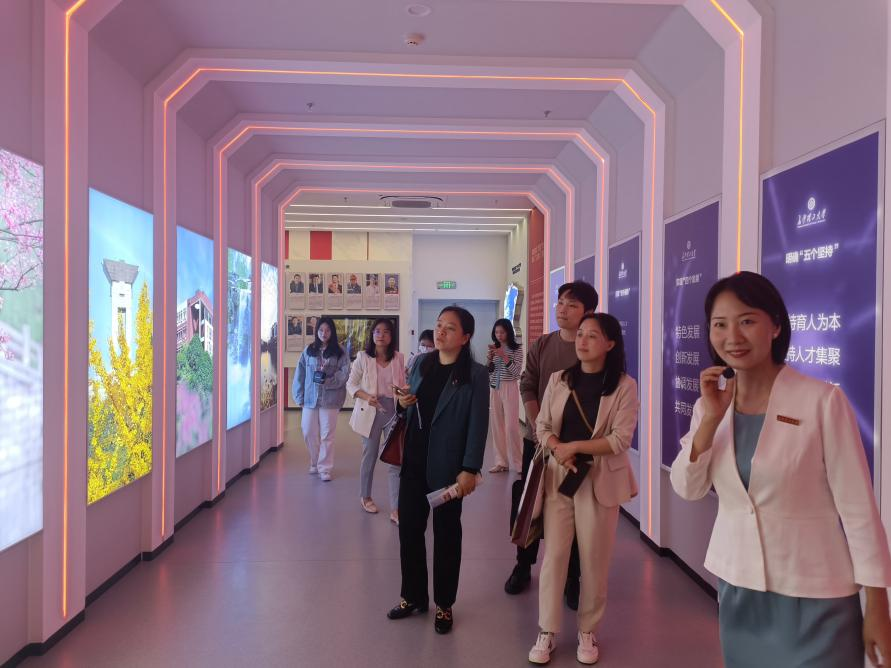 首先参观了长沙理工大学“三全育人”教育基地,辅导员代表宋新详细讲解了“三全育人”基地的建设方向、主要内容、特色办学等,包括党的发展史、学校发展史、各领域主要贡献者、优秀校友等。