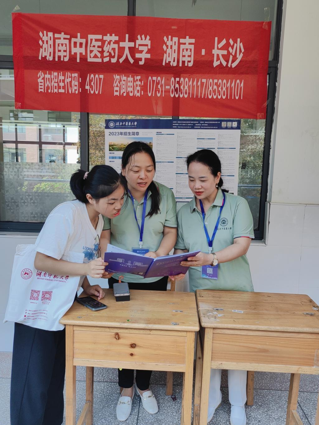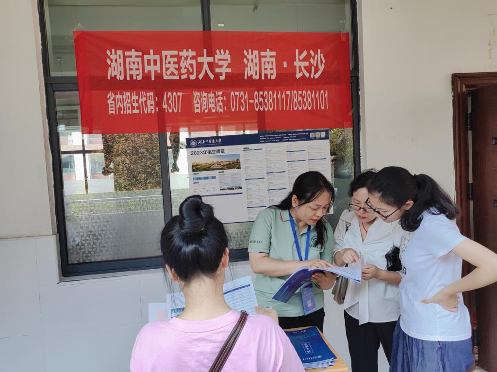 多支招生宣传队伍通过招生宣讲会、现场咨询会等形式开展招生宣传活动,与2023年高考志愿填报生及家长进行面对面交流,细心地解读大学各专业招生信息并从湖南中医药大学办学历史、教学历史、专业优势、发展前景、近年招生情况等方面向广大考生和家长耐心解答。