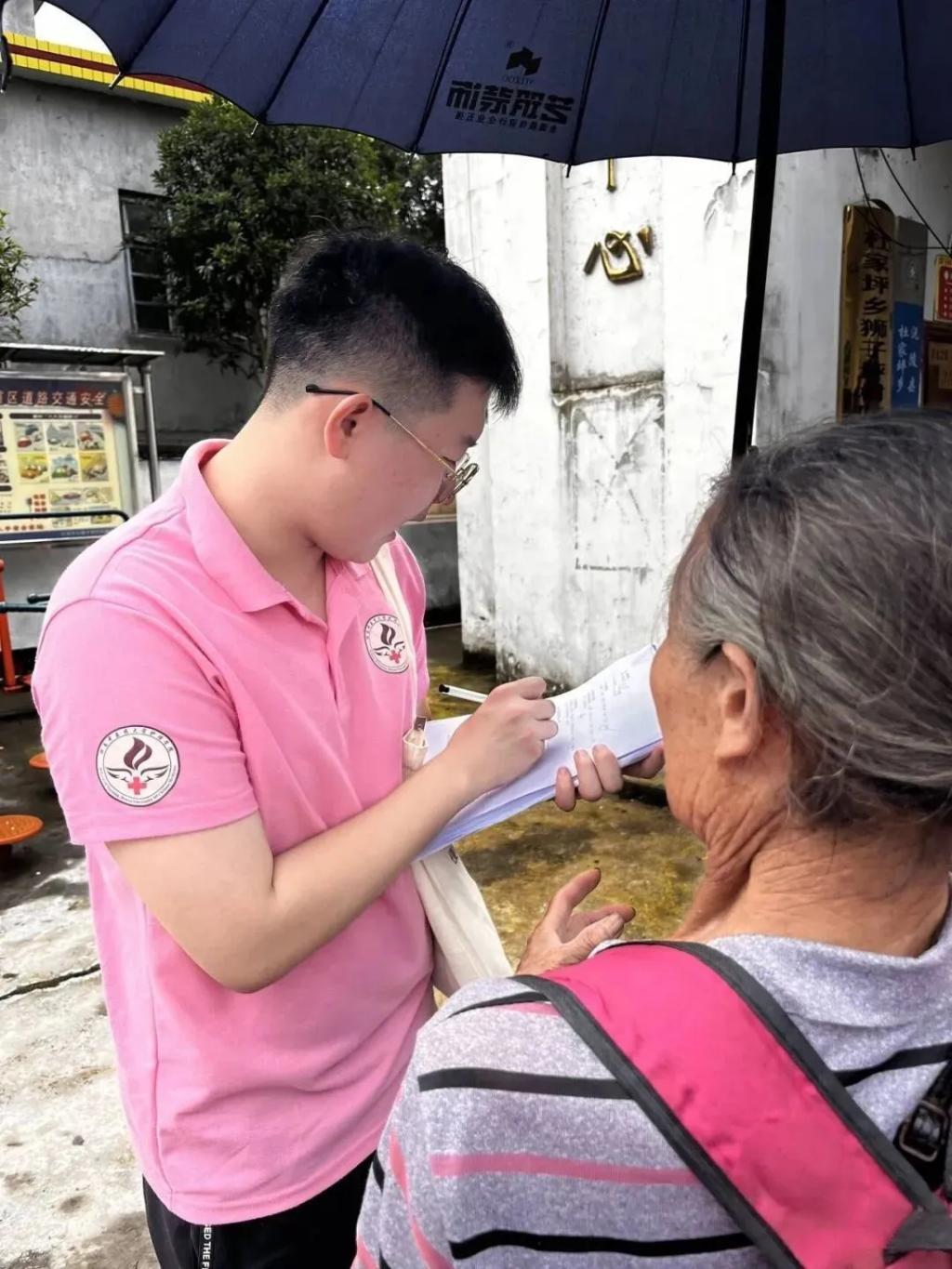 活动期间,调研队走访了狮子坪村、松溪村等周围村落,对村民进行了关于年龄、健康状况以及对中医药的认知了解的调研。调研队敲开一扇扇门,一遍遍重复相同的问题,记录一份份不同的答案,了解当地的真实情况,在交谈中拉近心与心间的距离。“为了扩大我们实践活动的影响范围,让之后开展的义诊活动更具有针对性,我们今年去了几个之前从未开展过相关活动的村子进行初步调研。结果发现大多数村民具有腰痛与膝盖痛等病症,对医疗资源的需求非常多。但乡村地势崎岖,外出路途遥远,那里的村民非常需要我们的义诊活动。”调研队的志愿者介绍道。