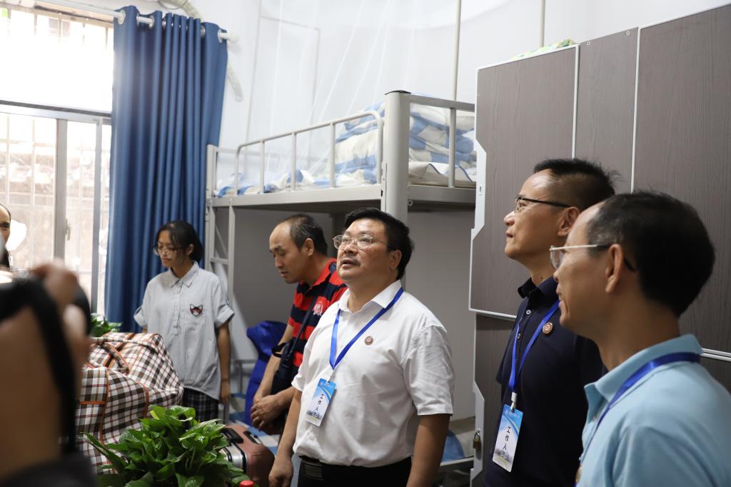 戴爱国、易刚强一行深入宿舍、食堂悉心查看学生住宿、用餐等情况,与到校的新生和家长热情交流,认真聆听新生和家长对学校的建议与感受,欢迎他们成为护理学院大家庭的一员,并鼓励他们尽快适应大学的学习和生活环境,开启美好的大学生活。