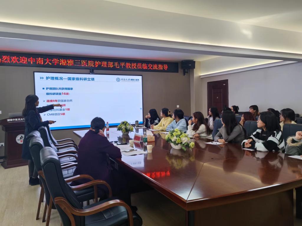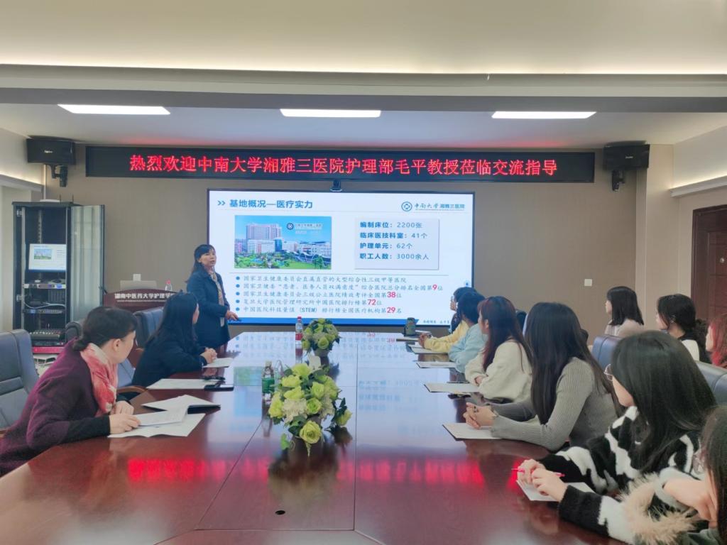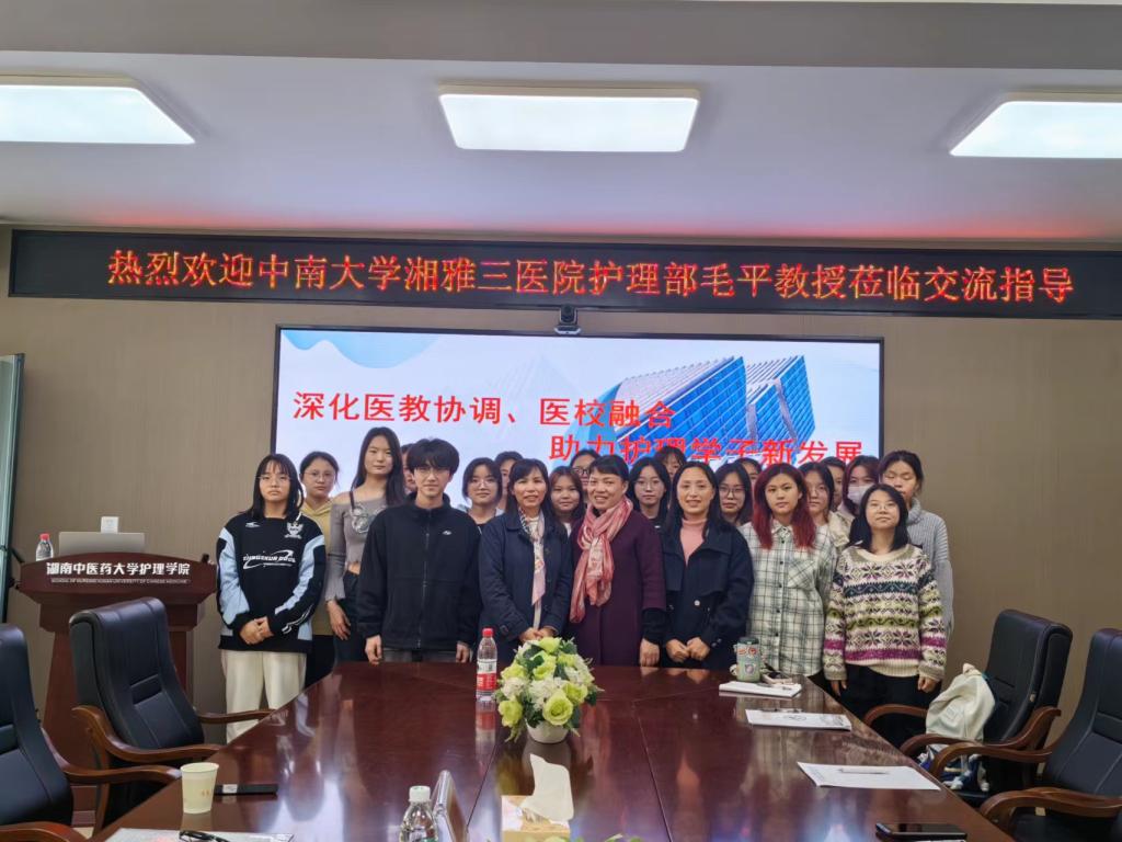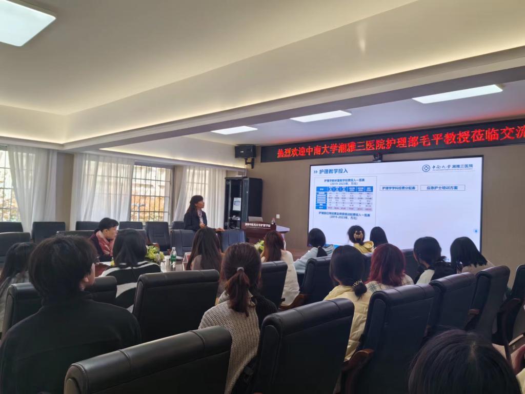 为深化医教协同、医校融合,进一步做好我院护理学生专业思想教育、职业生源规划以及更加全面了解护理实习开展情况,我院特邀湘雅三医院护理部专家毛平教授来我院授课,陈偶英院长接待了毛平教授一行。授课开讲之前,陈院长首先对毛平教授的学术、科研情况向同学们进行了介绍。