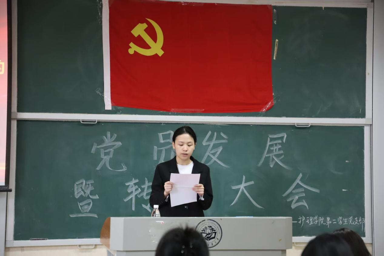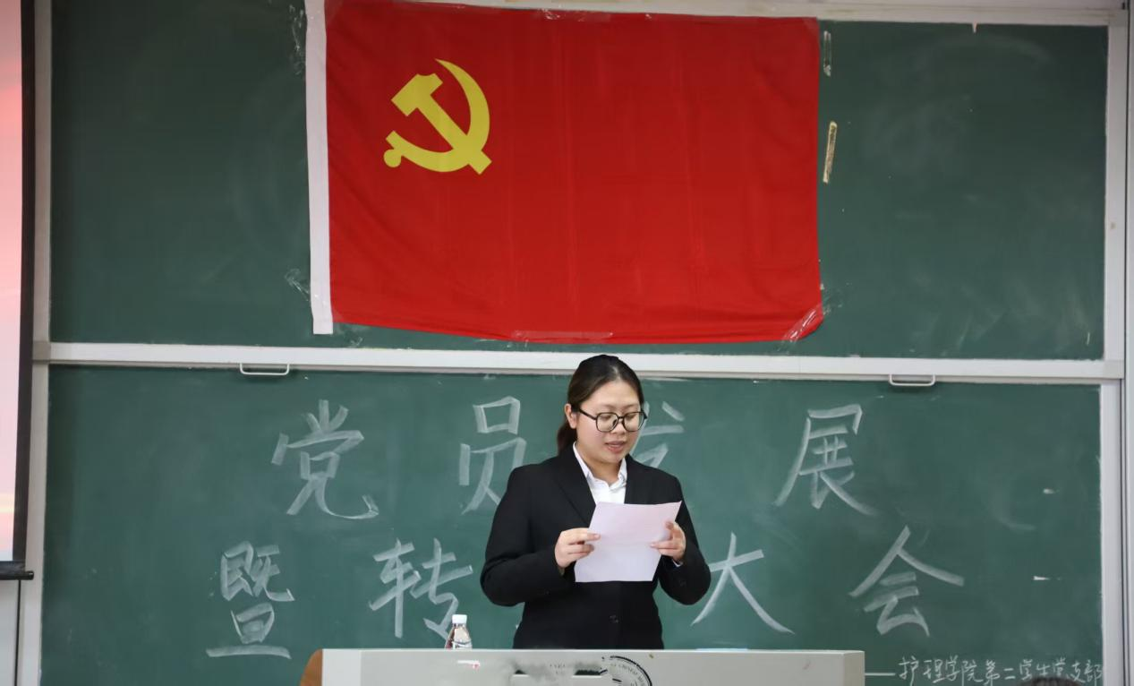 为切实保障党员民主权利,确保党员发展质量。2025年11月30日14时30分湖南中医药大学护理学院第二学生党支部在济世楼402教室隆重召开了党员发展转正大会。本次大会主要讨论陈定灿、王佑超、张睿心、雷芷嫣、王雨萱、范晓雨6名发展对象的入党问题及石晶璇、姜奕如、彭欣怡、张雅晶、冯婉怡、王海兰、周婧、卢余8名同志按期转为中共正式党员的问题。护理学院第二学生党支部副书记林佳旭老师及支部全体发展对象和党员同志出席本次会议。