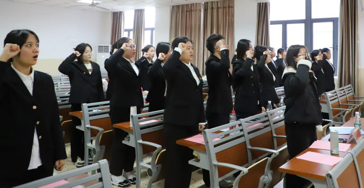 大会之初,全体人员起立,奏唱《国际歌》,现场气氛庄重而热烈。会议第一阶段为党员发展大会。6名发展对象面向党旗庄严宣誓并宣读入党志愿书,汇报了对党的认识、入党动机及个人履历。他们表示,通过深入学习和实践,对党的理论、历史和宗旨有了更深刻的理解,坚定了加入中国共产党的决心。随后由入党介绍人邓雅琴同志介绍发展对象的有关情况及对其入党的意见,支部委员会陶鑫同志报告审查意见后,经过支部正式党员充分讨论并投票表决,支部副书记林佳旭宣读支部大会决议:一致同意陈定灿、王佑超等6名同志发展为中共预备党员。