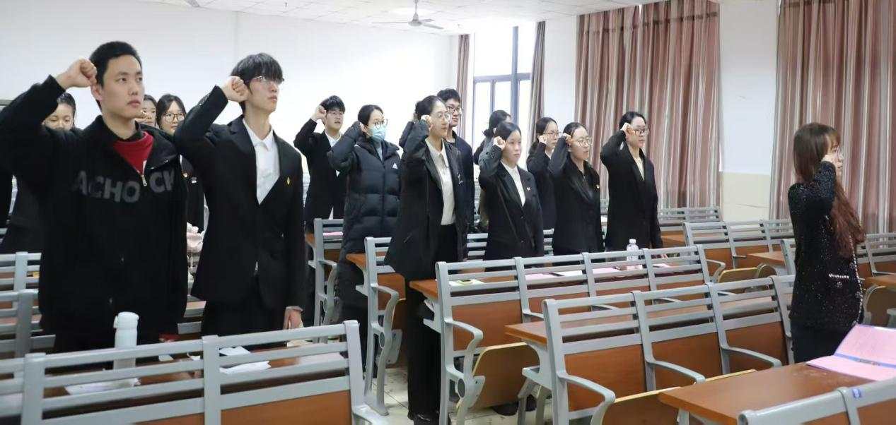 大会伊始,全体人员唱响《国际歌》。随着歌声的落幕,大会进入第一阶段:党员发展大会。8名发展对象面向党旗庄严宣誓并宣读《入党志愿书》,向党组织汇报了自身对党的认识、入党动机及本人履历,随后由入党介绍人刘薇同志介绍发展对象的有关情况和对其入党的意见,支部委员会张泽馨同志报告审查意见后,经过支部正式党员充分讨论并投票表决,支部书记邹灵玥宣读支部大会决议:一致同意彭志凯、万茜等8名同志发展为中共预备党员。